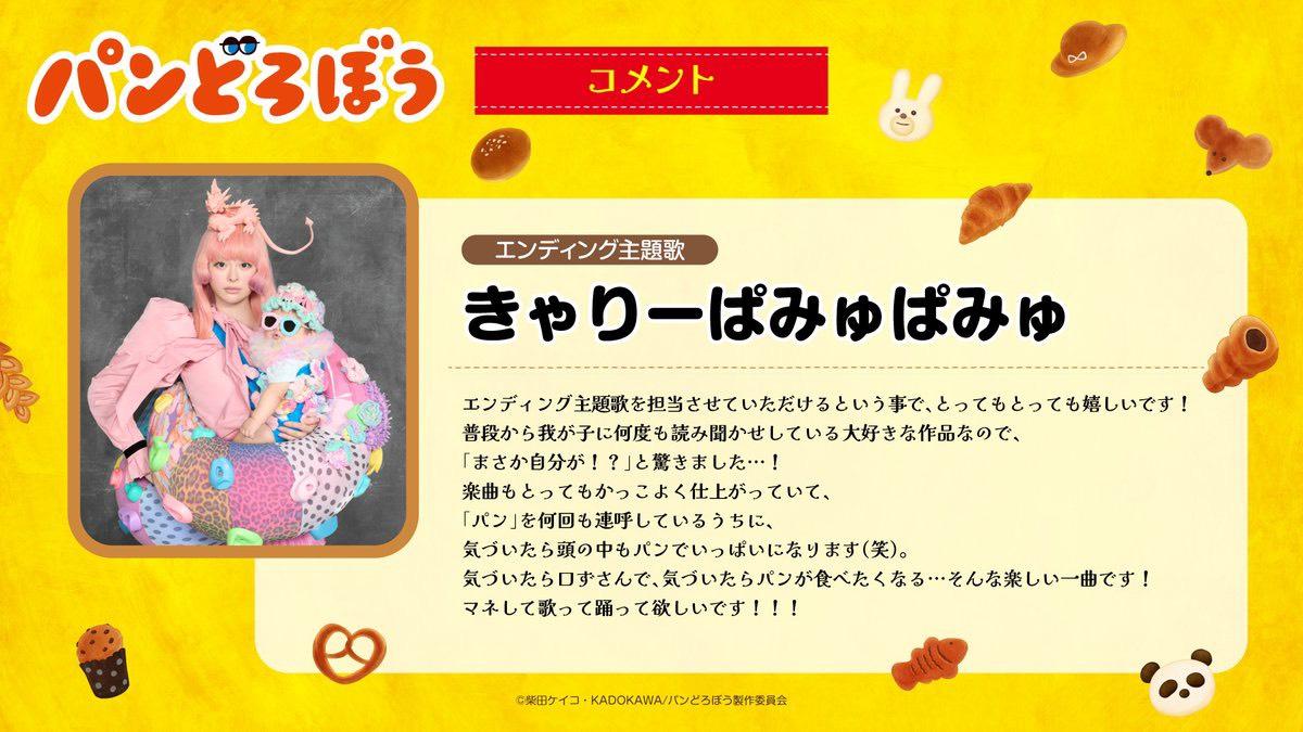 アニメ『パンどろぼう』のエンディング主題歌を担当させていただく事になりました🍞